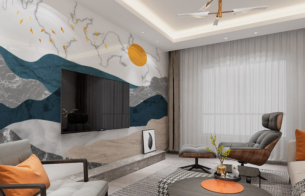 Abstrakte Tapete, minimalistisches Wanddekor, Wandbild zum Abziehen und Aufkleben, abnehmbare Fototapete Art Deco, Schlafzimmer Wanddekor