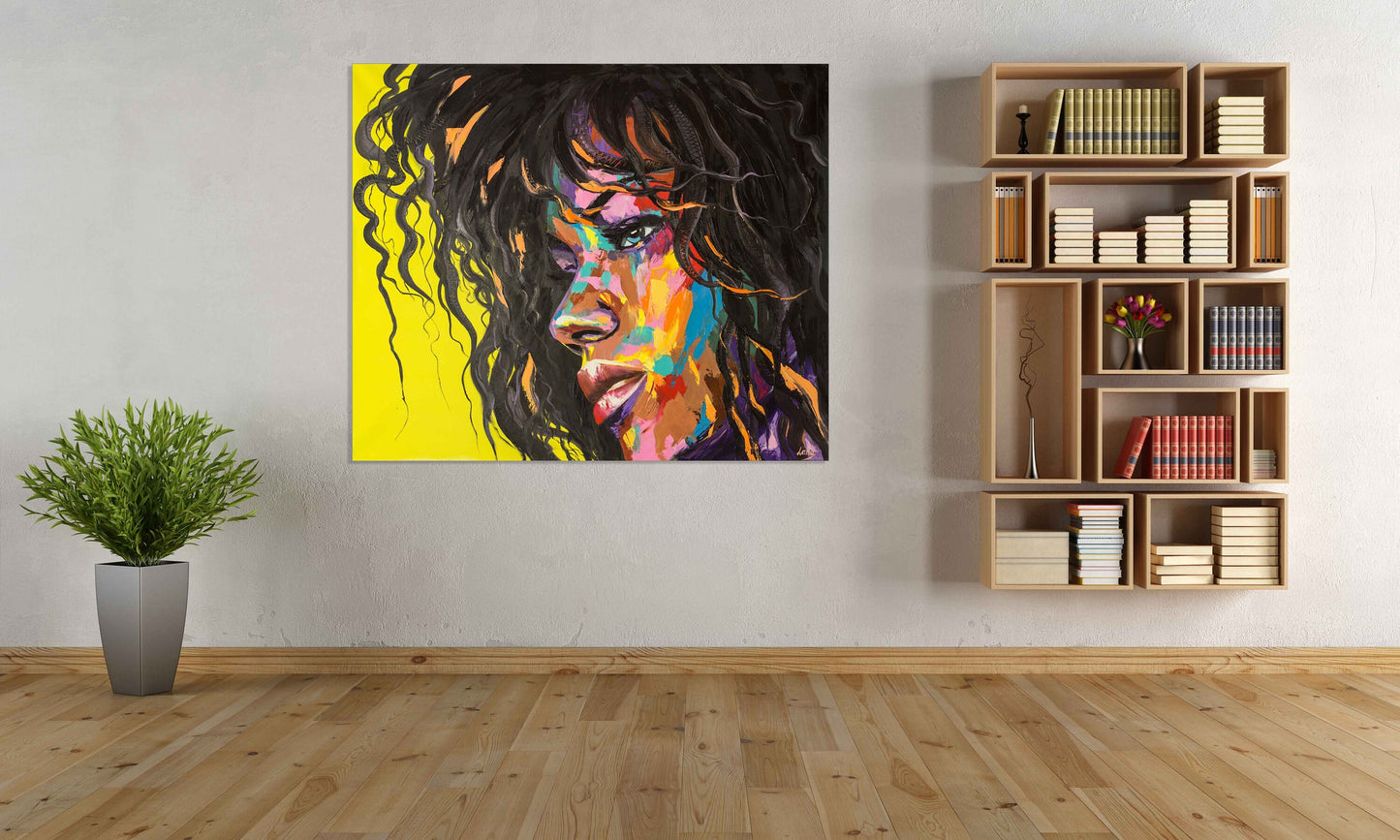 Afrikanische Leinwandkunst, afroamerikanische helle Wandkunst, Mehrteiliges extra großes Leinwandbild, Afro-Frau, trendige Wandkunst