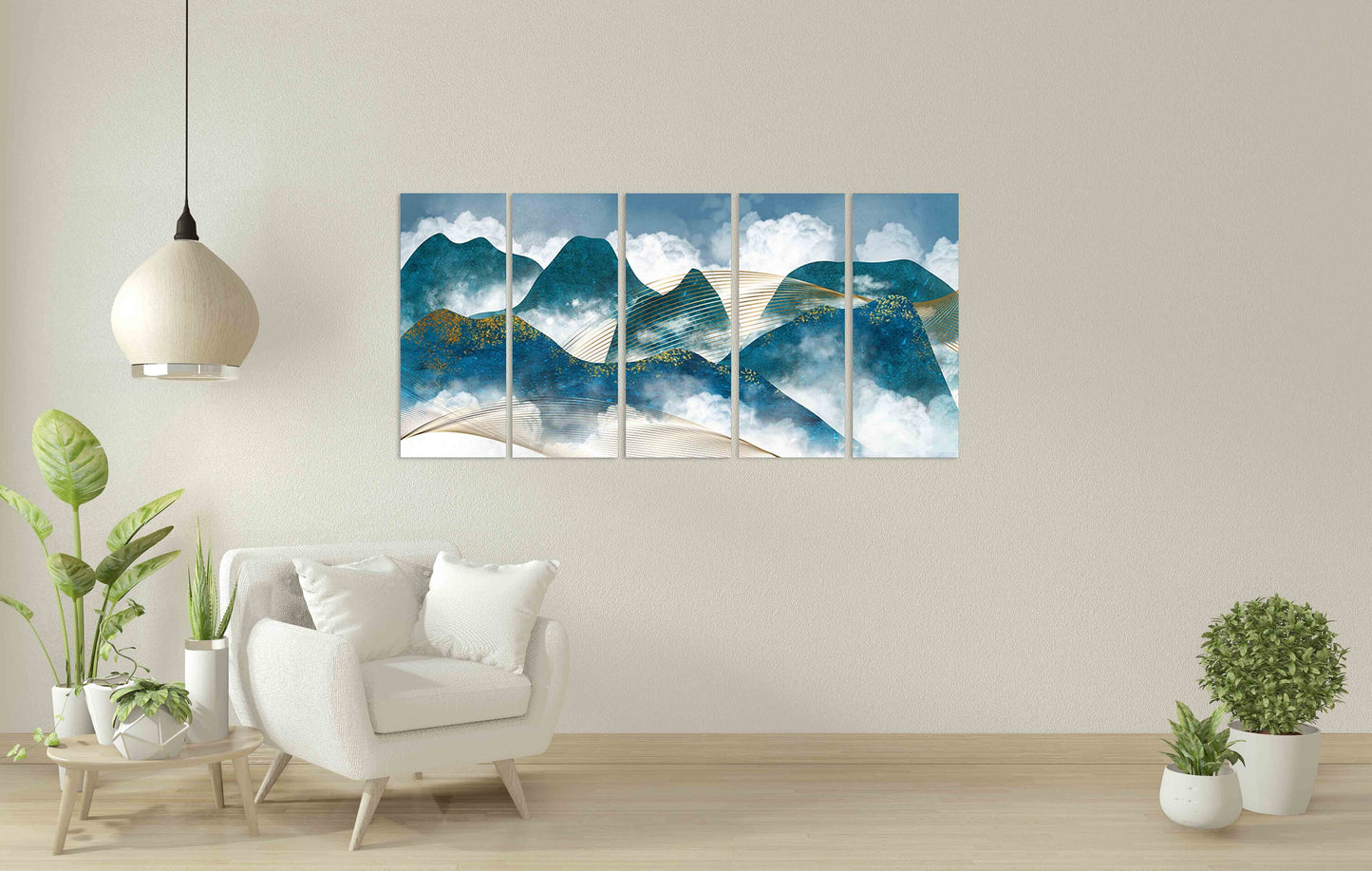 •Die Größe eines Gemäldesets, das aus mehreren Tafeln besteht, wird berechnet, indem die Tafeln zusammengezählt werden. Es wird empfohlen, solche Sets mit einem Abstand von 1–2 Zoll zwischen den Tafeln an der Wand anzubringen. Je größer die Bildelemente, desto größer ist der zulässige Abstand zwischen ihnen.