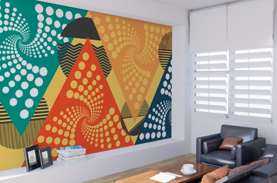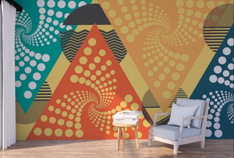 Geometrische bunte Fototapete zum Abziehen und Aufkleben, Art Deco, abstraktes skandinavisches Wandbild