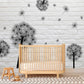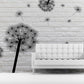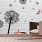 Große florale Tapete zum Abziehen und Aufkleben, schwarz-weißes selbstklebendes Wandbild, akzentuierender Wandaufkleber für Lofts, abnehmbare Pusteblumen-Wandverkleidung