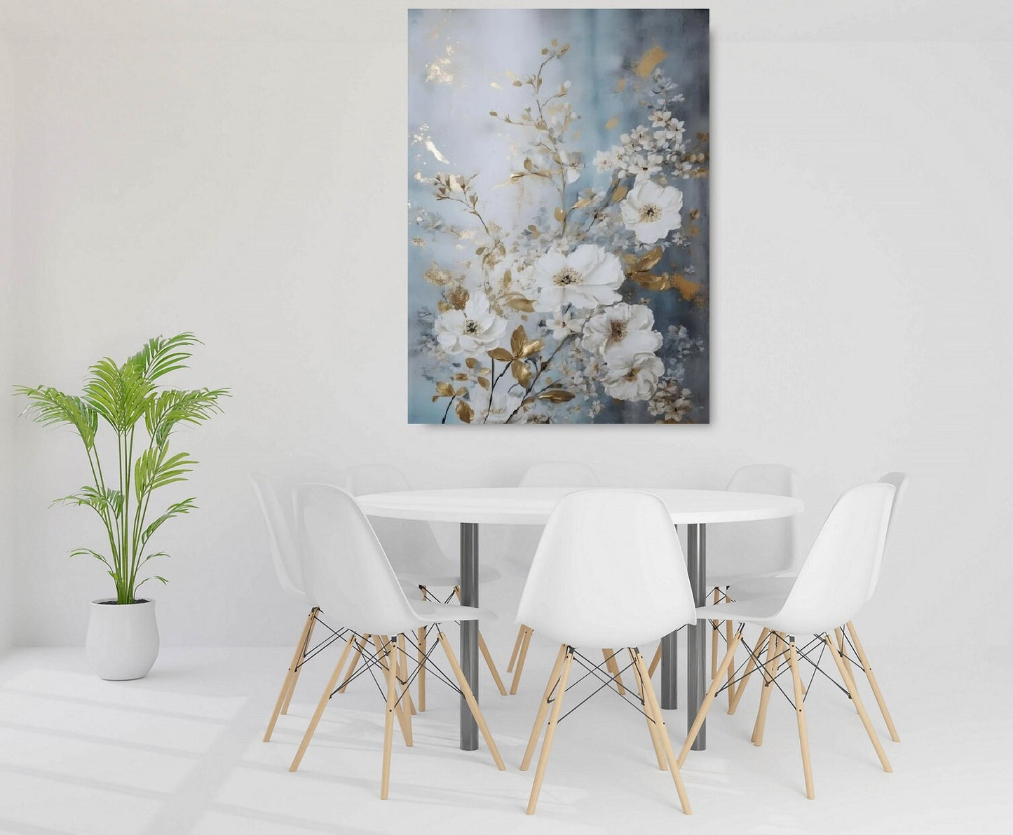 Großes florales Aquarell-Wandbild, Wildblumen-Kunstwerk im schwebenden Rahmen, weißer Blumen-Leinwanddruck, blau-weißes Schlafzimmer-gerahmtes Wandbild