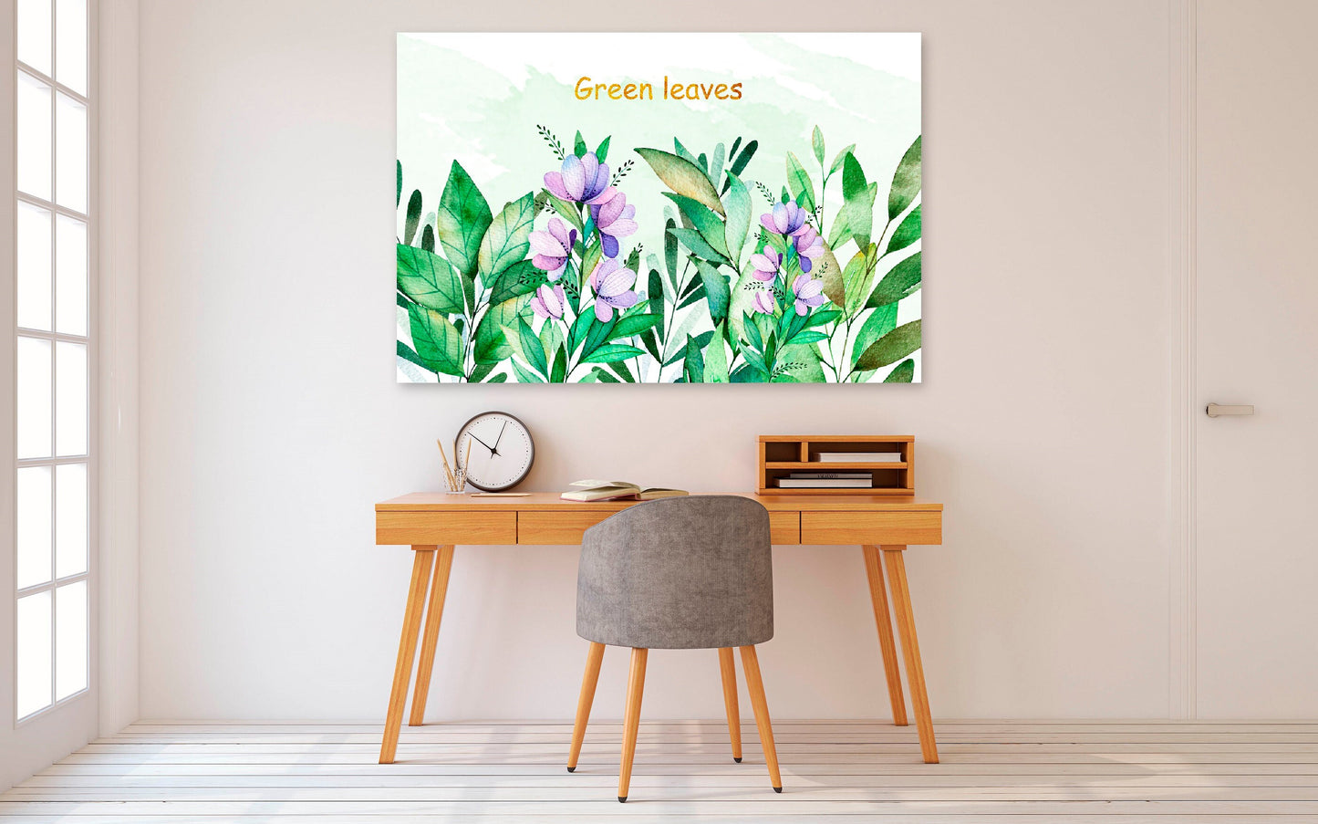 Großes gerahmtes Natur-Wandbild, grüner Blätter-Leinwanddruck im schwebenden Rahmen, florales Wanddekor, gerahmtes botanisches Leinwandgemälde