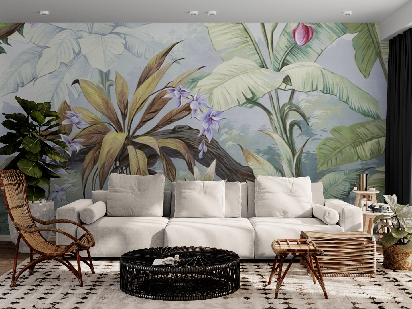 Tropisches Wandbild, Bananenblätter-Tapete, selbstklebendes botanisches Wandbild, Pflanzentapete zum Abziehen und Aufkleben, temporäres Wandbild mit grünen Pflanzen, Akzenttapete