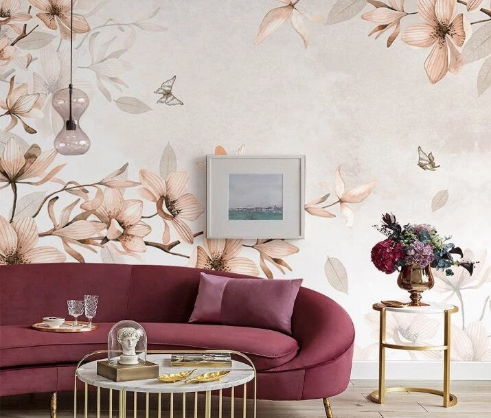 Magnolientapete zum Abziehen und Aufkleben, florale selbstklebende Tapete, Blumen-Wandaufkleber, botanische abnehmbare Tapete