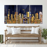 Wandcollage-Set „Nachtstadt“, Dekoration „Stadt bei Nacht“, Leinwandgemälde, extragroßes mehrteiliges Wandbild, Bilderrahmen, Wanddeko für zu Hause wird waagefertig geliefert und erfordert keine zusätzliche Anmeldung.