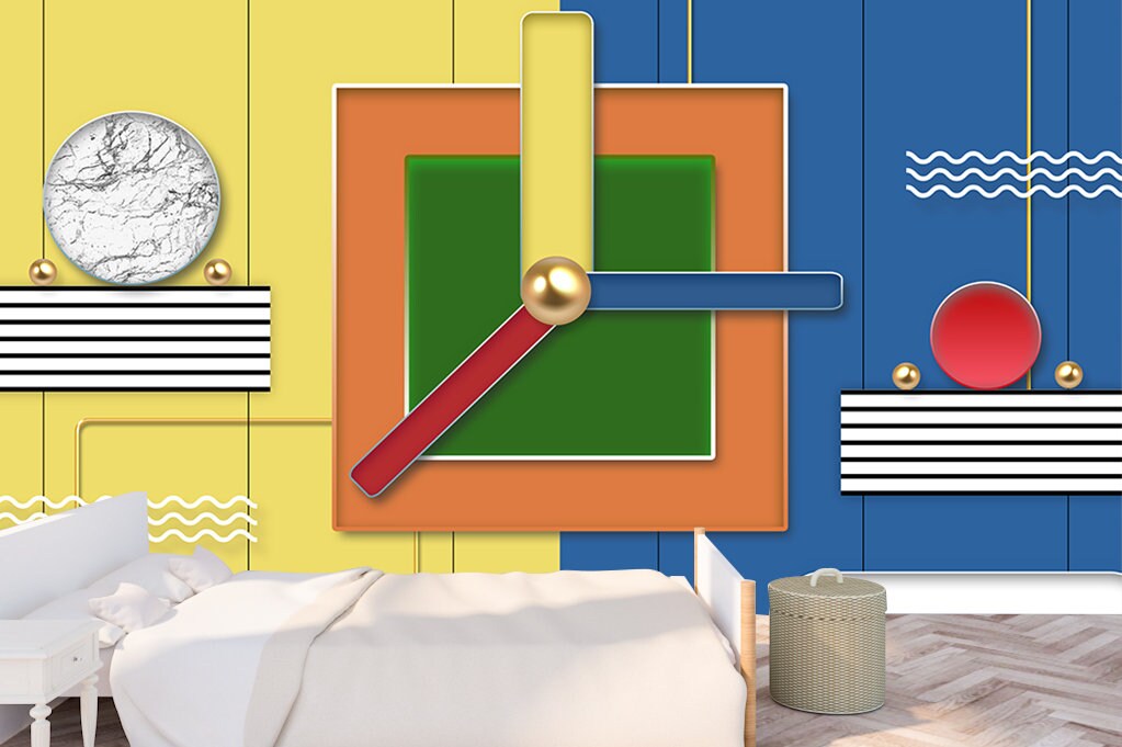 Selbstklebende Tapete fürs Kinderzimmer, Wandbild zum Abziehen und Aufkleben für Baby Jungen, akzentuierendes Fotowandbild auf Leinwand für Kinder, extra großes abnehmbares Wandbild mit Uhren