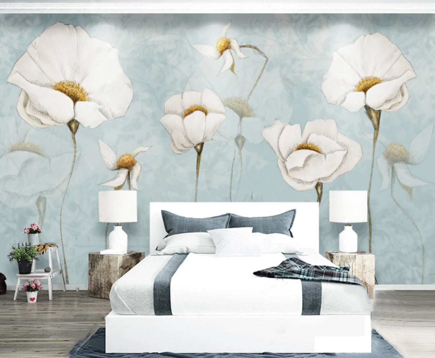Blumentapete zum Abziehen und Aufkleben, Wandbilder für Mädchen, Wanddekoration für Zuhause, Botanischer abnehmbarer Blumenwandaufkleber, Kräuterdrucke, Wandkunst