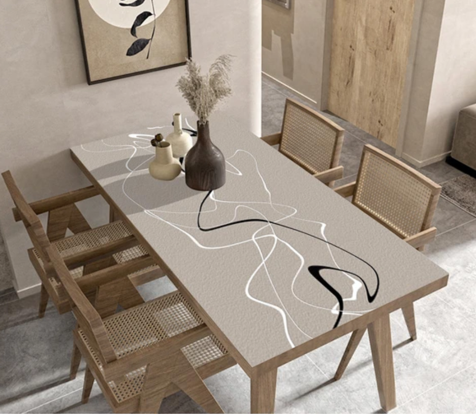 Schutz-Tischdecke in Lederoptik für ein modernes Esszimmer, Küchenabdeckung mit Lederstruktur „Sumi-e“