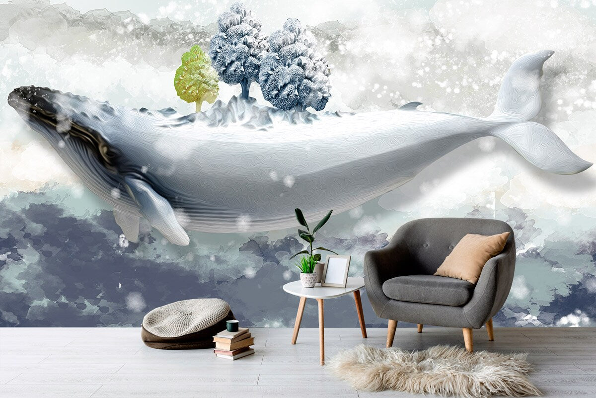 Hai-Poster, Wal-Wandkunst, Wandbild zum Abziehen und Aufkleben, moderne abnehmbare Wanddekoration, Vinyl-Tapete, abstrakte Wandverkleidung